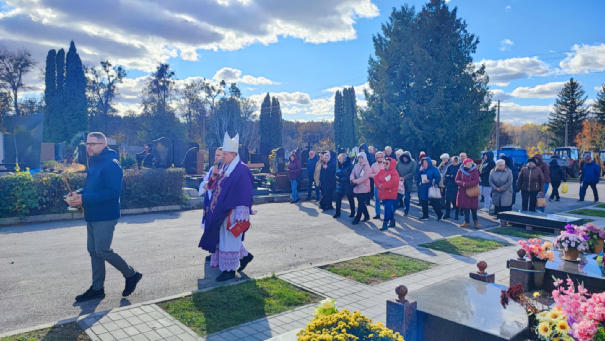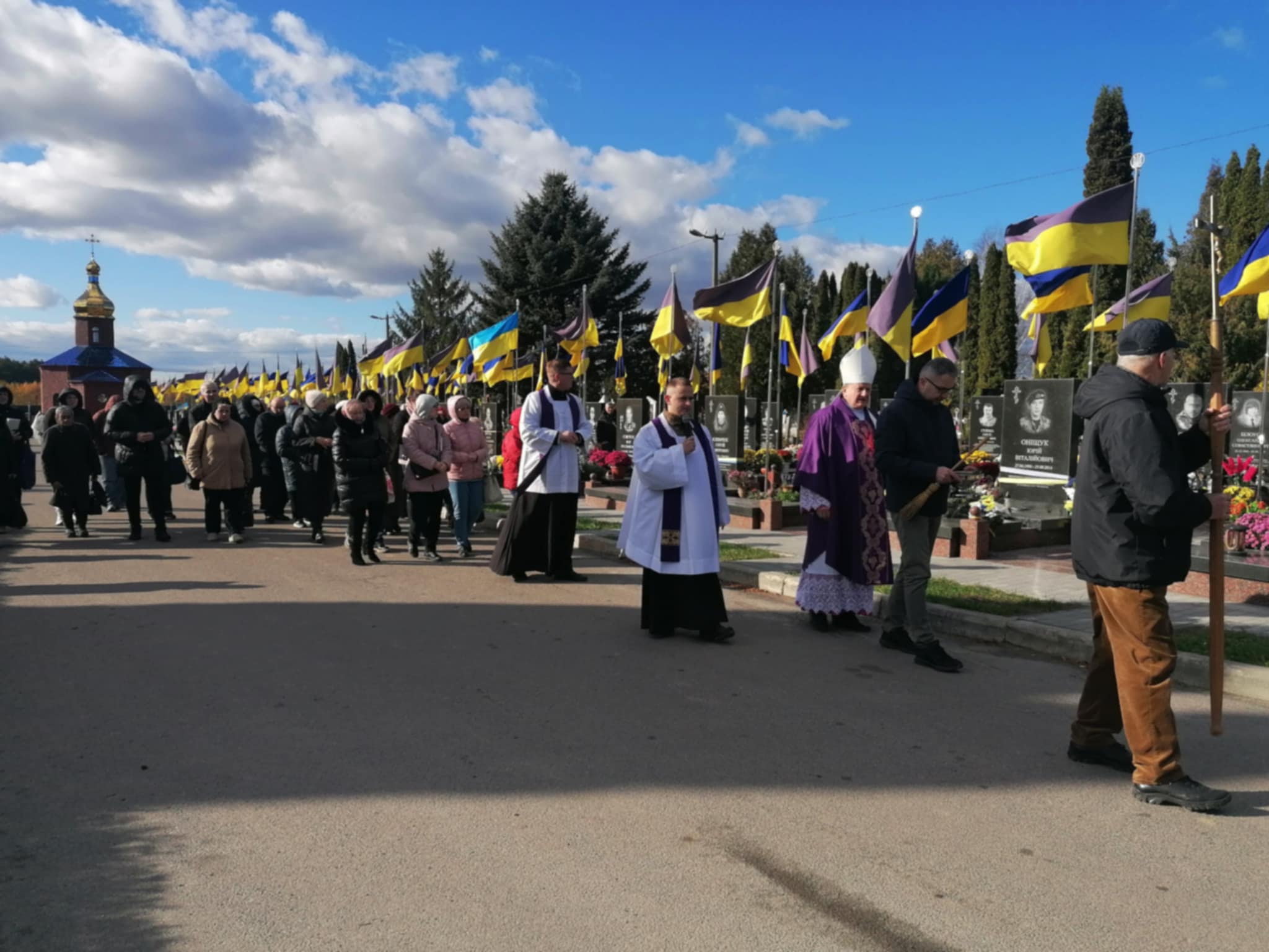 Процесією цвинтарем завершили особливу молитву за померлих адже в ці дні особливо від 1 по 8 листопада можна отримати повний відпуст який може бути пожертвуваний виключно за померлих.